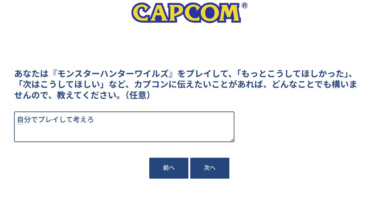 『モンスターハンターワイルズ』の製品アンケートを実施中です