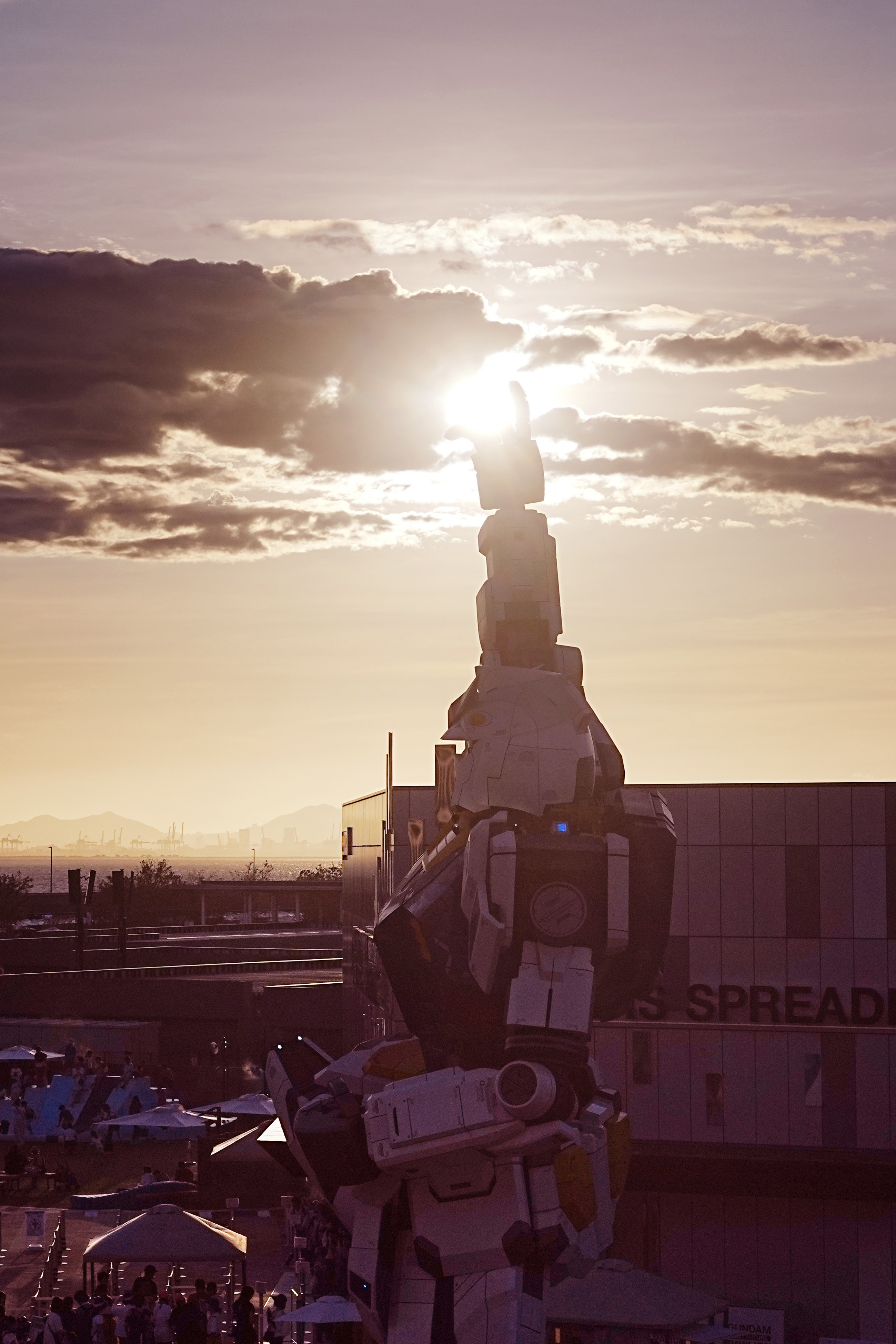 ガンダムの設置されてる向き的に真横からじゃないと沈む太陽と一緒に撮れないな